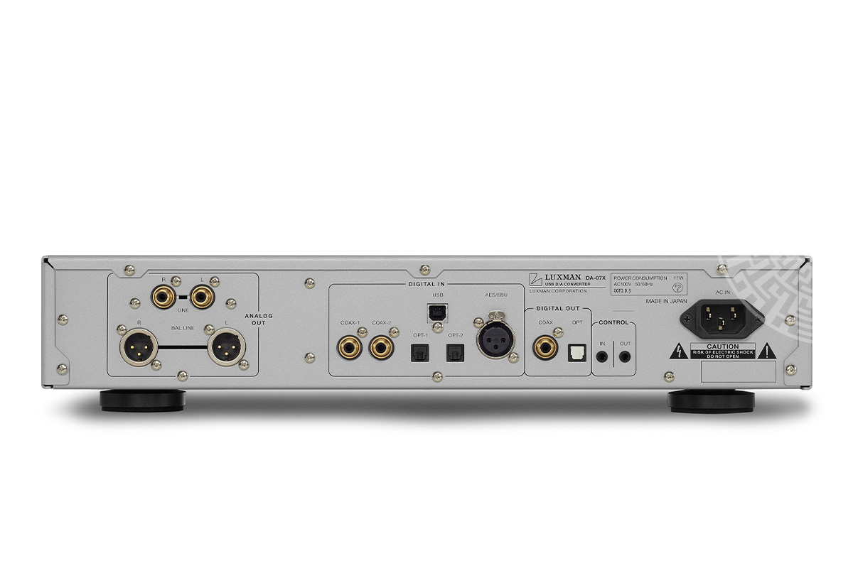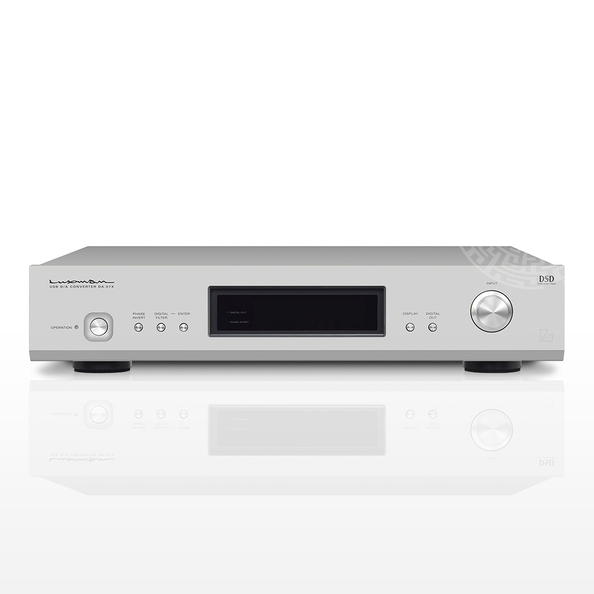 The Luxman DA‑07X is a high-end dual-mono DAC that delivers exceptional digital-to-analog conversion with a natural, analog-like sound. Utilizing two ROHM BD34301EKV DAC chips, it supports PCM up to 768 kHz/32-bit and DSD up to 22.5 MHz, ensuring precise rendering of every musical detail. Its multiple inputs, including USB, coaxial, optical, and AES/EBU, offer flexible connectivity for modern digital sources.